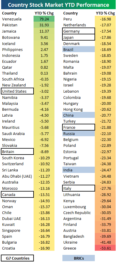 Look at the world stock market chart below of 67 countries. Nearly every one of them is going bankrupt. Adjusted for inflation this chart would be much worse. Ironically, the 10 countries that had a positive stock market are some of the worst in the world economically. This is real world proof the Much Greater Worldwide Depression is already happening. This is a worldwide economic collapse, and no country will be spared. There is no safe haven to flee to. We now live on one big Prison Planet with 7 billion inmates.