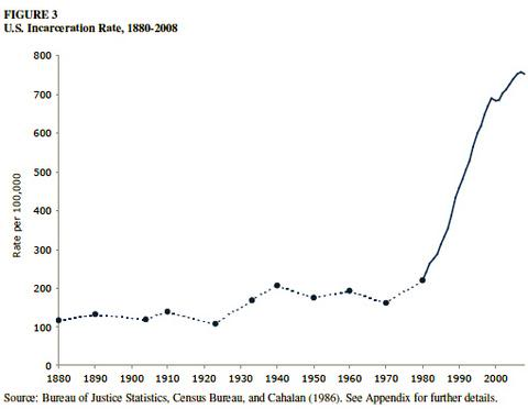 We keep reminding you America has 5% of the world population, but 25% of the world prison inmates. Now we have FEMA camps, so it will get even worse. Here is a scary chart. Things were reasonable until 1980 when we just started locking up everyone we could on any charge possible. The fake War on Drugs is largely responsible here. Look at this chart and you'll see we live in a POLICE STATE. Heck, Russia, China, North Korea, and Cuba aren't nearly this bad. Seriously, they aren't. They are all bastions of freedom by comparison.